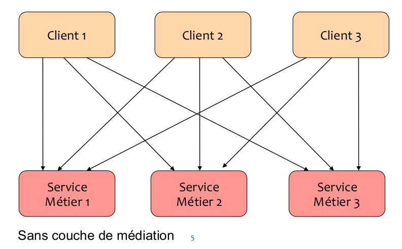 Et voici les mêmes composants avec l'ajout d'une couche de médiation :