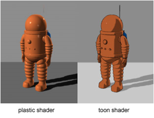- Cell shading : Dans ce procédé, les contours sont plus marqués et la palette de couleur utilisée est réduite pour obtenir cet effet de dessin-animé.