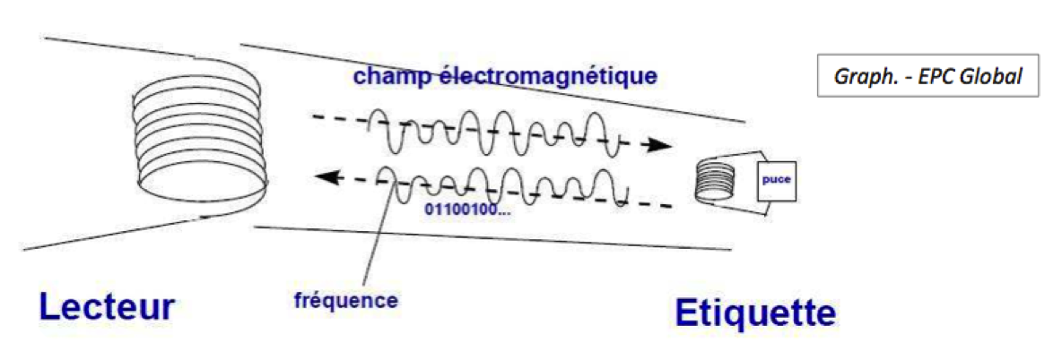 Physiquement, un lecteur NFC émet des ondes en permanence. Lorsqu'un tag passif est passé à proximité, il va émettre à son tour des ondes magnétiques qui vont coder les informations se trouvant dans le tag. Les données sont alors récupérée dans le lecteur.