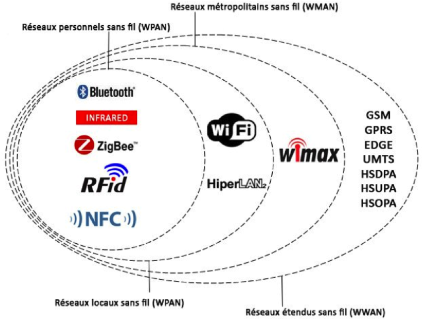 NFC est est une technologie sans fil. Au même titre que blutooth, elle fait partie des WPAN, les wireless personal area network. C'est la famille des réseaux sans fils à courte portée.