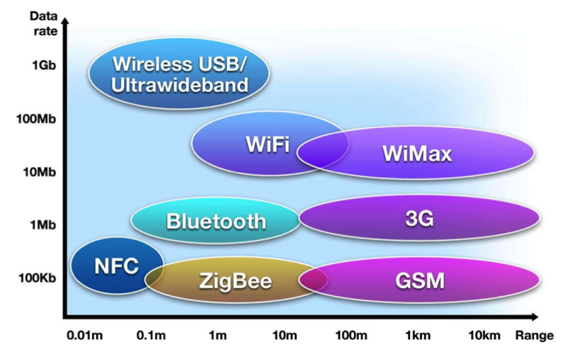 Comparée aux autres technologies sans fils, NFC est de loin celle qui a les plus petits ordre de grandeur.