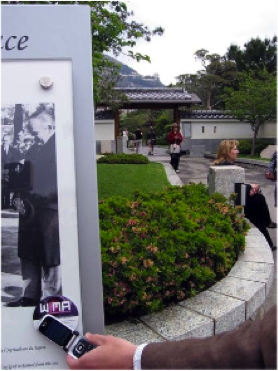 Dans une ville, un touriste peut approcher sont mobile NFC à coté d'une pancarte pour récupérer du texte ou des url(vidéo, site) qui vont lui donner d'avantage d'informations.