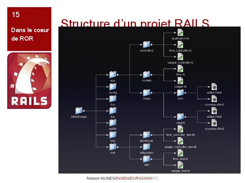 Comme nous l’avons vous précédemment, ROR définit un certains nombres de concept, dont celui de « chaque chose à sa place », nous le retrouvons dans la structure d’une application.