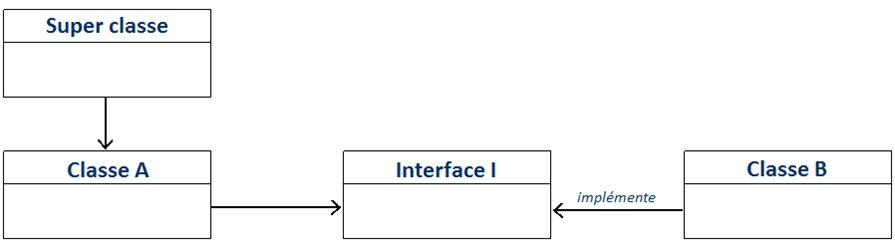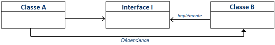 Le java fournit un moyen de simplifier la gestion des dépendances : l'Interface. Les interfaces en java permettent de définir des méthodes et leurs paramètres sans en définir le code. Ces interfaces sont ensuites implémentées par les classes dont on dépend.