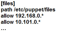 Il faut accepter les clients à accéder aux fichiers de configuration dans le ficheir "/etc/puppet/fileserver.conf" sur la machien faisant office de serveur.