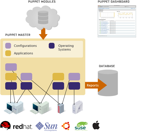 C'est un client nommé Puppetd. Il va vérifier toutes les 30 minutes (paramétrable) l'exactitude de sa configuration avec celle attendue par le serveur où il est enregistré.