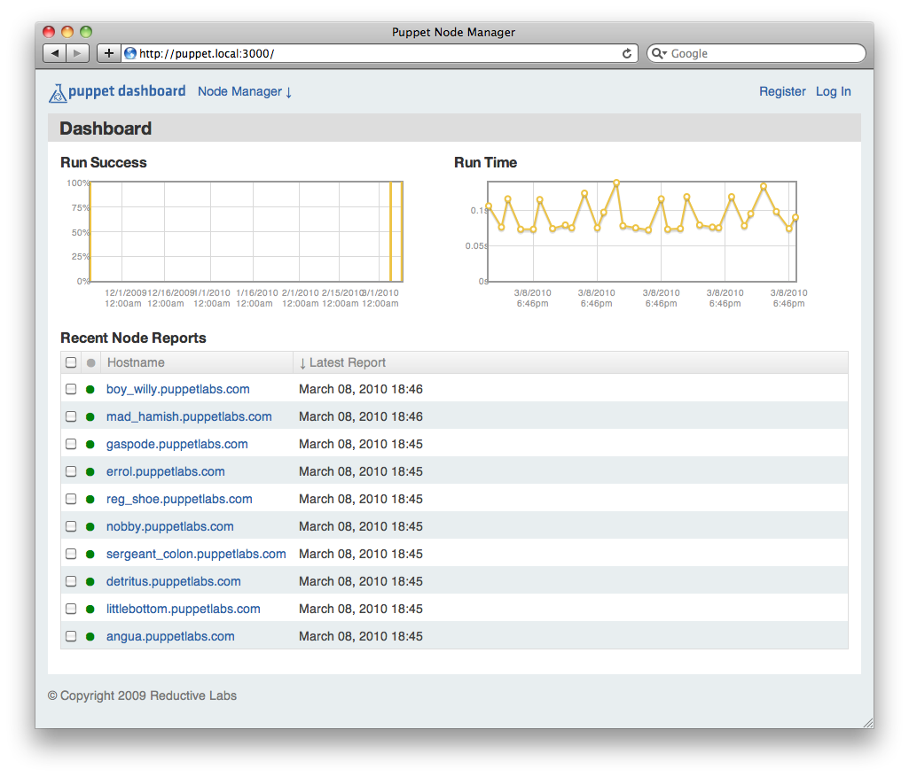 Afin d'avoir une visualisation graphique de la bonne prise en compte des modifications, une interface web est disponible : Puppet Daschboard.