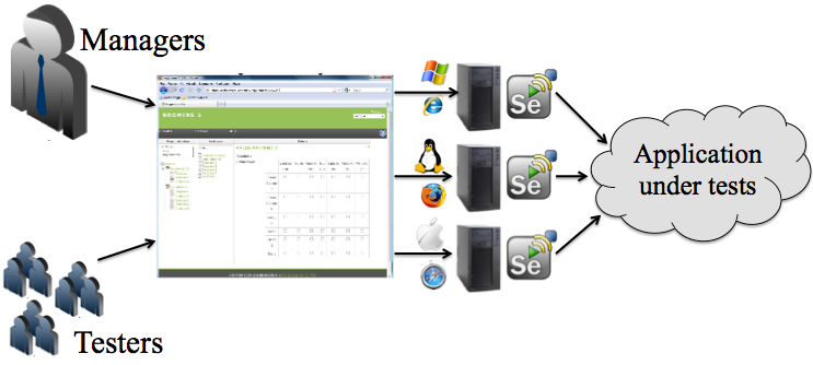 Les managers définissent les tests requis ainsi que les scnérios de tests. De ces définitions, les testers développent puis uploadent des tests développés en Java ou en Php. Il est possible de créer ces tests via Selenium IDE en utilisant un format d'export spécial Bromine. Une fois uploadés dans les portails, les tests peuvent directement être exécutés. Cette exécution peut être unique ou programmée à la manière d'un cron.