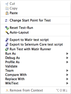 En effectuant un clic droit dans un Cubic Test Project nous pouvons observer la présence de Watir :