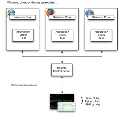 Le serveur Remote Control est un exécutable au format jar ce qui implique la présence d'un JRE sur la machine où l'on souhaite lancer le RC. Une fois actif, il est possible d'éxécuter des tests via ce RC. Ces tests peuvent être aux formats : Java, PHP, C#, Perl, Python et Ruby.
