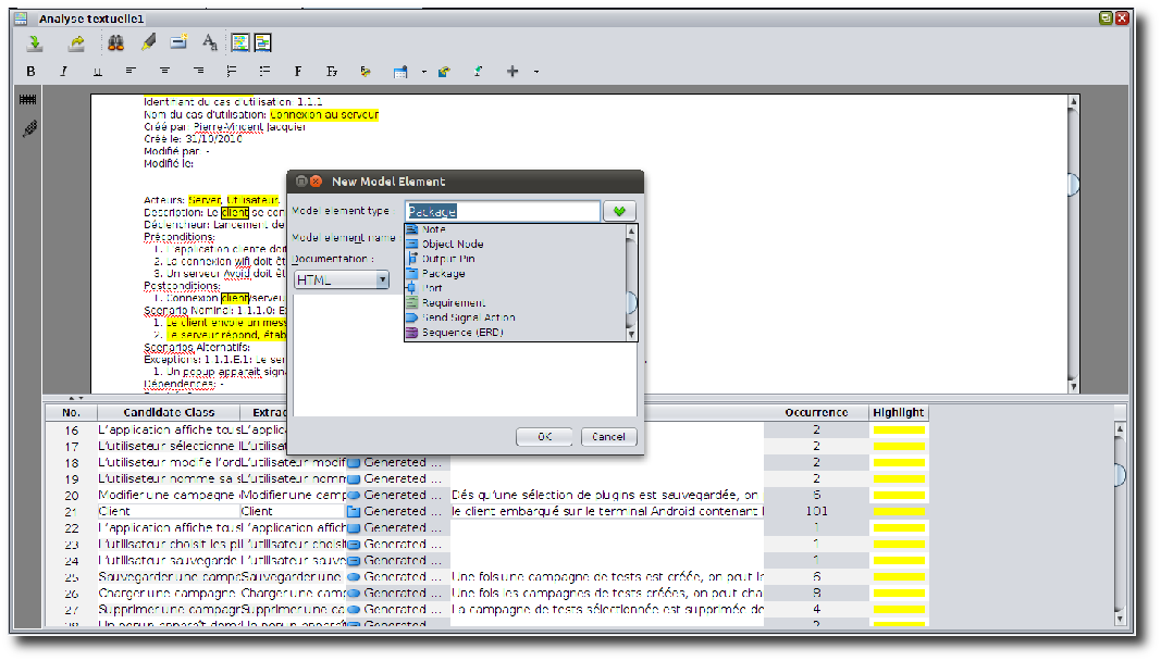 Visual Paradigm nous aide dans cette étape avec un outil permettant à partir d'un fichier texte de réaliser un inventaire des termes employés dans un document. On pourra ainsi définir le type d'un terme, s'il a un autre terme synonyme et lui adjoindre une description. A partir de ces données collectées on va pouvoir produire des documents type note de cadrage qui serviront de base de travail commune aux différentes parties. La communication en sera facilité et les zones d'ombre pourront être levées.