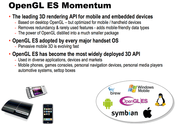 sont présents. La bibliothèque OpenGL ES répond à l'attente des développeurs, en offrant