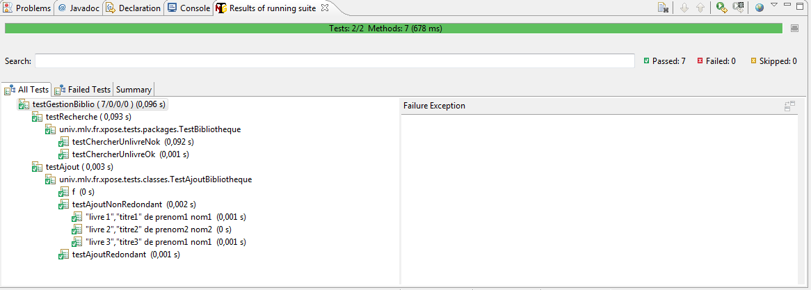 [Invoker 10923757] Invoking univ.mlv.fr.xpose.tests.packages.TestBibliotheque.testChercherUnlivreNok