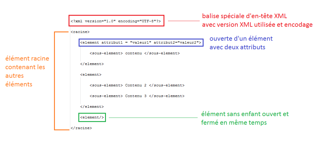 Concernant la syntaxe, XML fonctionne comme suit :