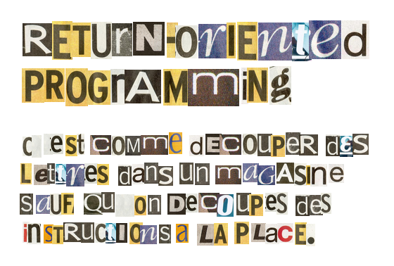 Pour reprendre mon exemple du return-to-libc c'est comme si cette fois on contrôlait l'ordre des lettres dans le mot pour en former des nouveaux.
