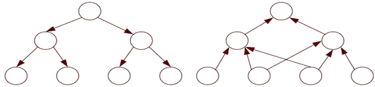 Dans cette figure, le problème à résoudre est représenté par la racine de l'arbre, et les descendants sont les sous-problèmes, plus faciles à résoudre. Dans la programmation dynamique, les feuilles constituent souvent les données de l’algorithme.