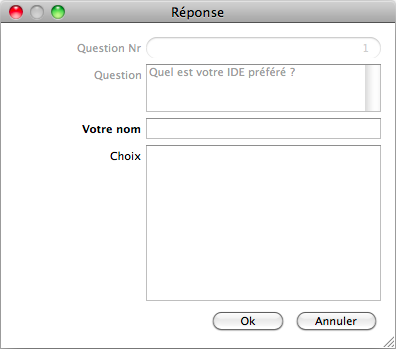 Pour aller plus vite j'ai réalisé le formulaire de réponse. A vous de faire de même en reprenant les concepts vus plus haut. Pour se faire reprenez le schéma sur lequel on s'est appuyé jusqu'a maintenant. Pour que la suite soit plus facile à comprendre créer cette forme en l'appelant "AnswerForm".