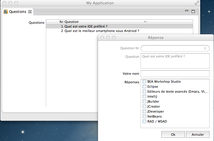 Dans cette partie du site, je vais vous présenter dans les grandes lignes un exemple d'application simple que l'on peut développer avec Eclipse Scout.
