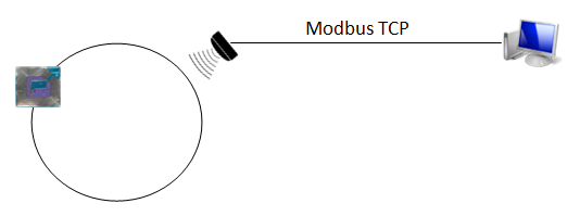 Dans cette application, nous allons faire des interrogations Modbus afin de savoir si un marqueur RFID est présent dans le champ électromagnétique d'un lecteur RFID. Nous avons donc un lecteur RFID jouant le rôle d'esclave connecté via une liaison série et le protocole Modbus TCP à une machine.