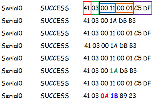 Couleur rouge : adresse de l'esclave (1 octet) ==> (41)h