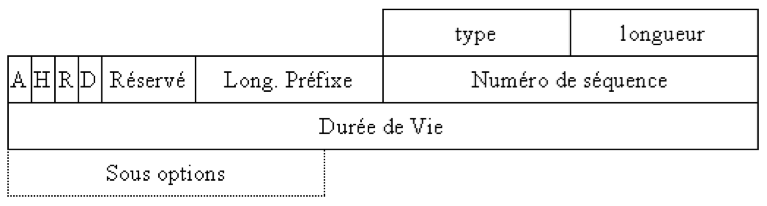 - H = 1 si le nœud demande que la destination soit son Home Agent (forcément un routeur sur le réseau d’origine).