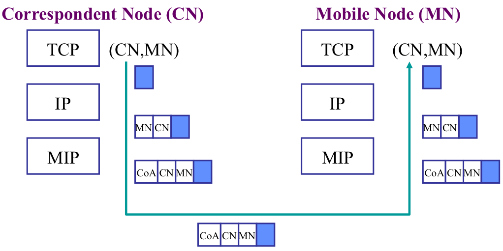Pour éviter ce routage triangulaire, un nœud mobile peut envoyer un BU à tout nœud correspondant qu’il soit mobile ou stationnaire. Ainsi le nœud correspondant effectue un appariement entre l’adresse d’origine du nœud mobile et son adresse de care-of-address. Dans ce cas le nœud correspondant n’utilise pas l’encapsulation mais la méthode suivante :