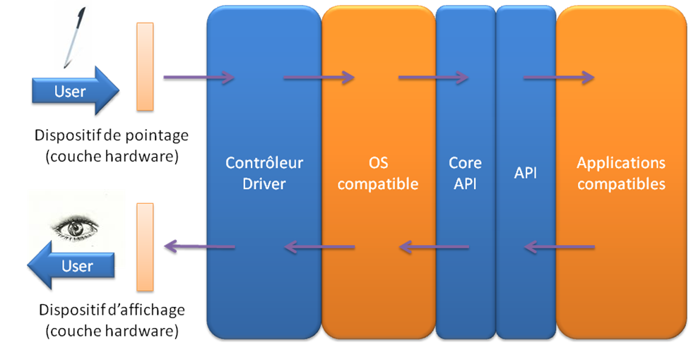 La couche logicielle, présente quelle que soit la technologie utilisée, est primordiale pour le bon fonctionnement de l’écran tactile. En effet, elle influe beaucoup sur les caractéristiques de l’appareil, tout autant que l’écran lui-même. Un téléphone peut disposer d’un écran tactile de haute qualité, mais son système d’exploitation contribue aussi autant, voire plus, au sentiment de rapidité et de fluidité perçu par l'utilisateur. Cette couche logicielle doit cependant savoir se faire oublier pour ne pas altérer l’expérience de l’utilisateur.