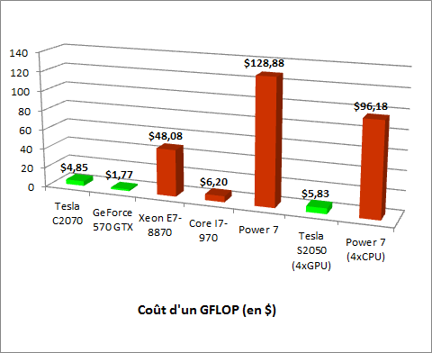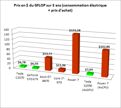 Nvidia | GPU (448 cœurs) | GeForce 570 GTX | 198 | 350 $ | 218 W | |