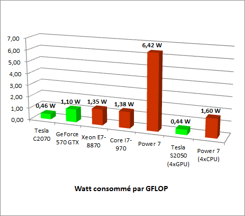 Nvidia | GPU (448 cœurs) | Tesla C2070 | 515 | 2500 $ | 238 W | |