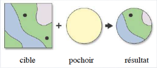- Découper Découpe les entités cibles selon le contour des entités pochoir