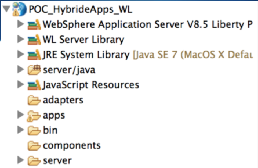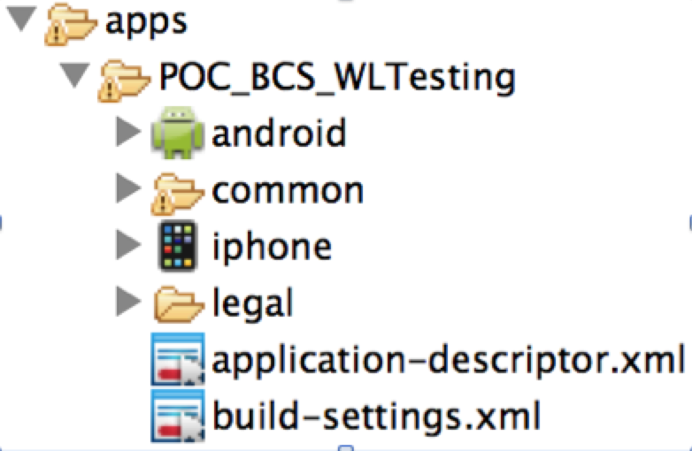 Après avoir créé un projet (File -> new -> Worklight Project), vous retrouverez un projet worklight :
