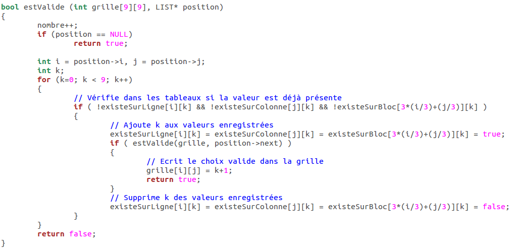 La vérification des possibilités se fera à l'aide de variable globale qui auront pour but de mémoriser les valeurs déjà renseignées dans la grille afin de limiter les opérations de parcours