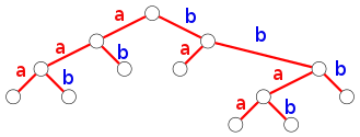 Il est donc tentant d'étiqueter les arêtes gauches par $a$ et les arêtes droites par $b$ :