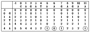 If we are interested in finding all the substrings of y which are at a distance less or equal to a given value k of x then it is enough to initialize all the values of the first line of the table with 0 (this means that the cost of insertions of letters of y at the beginning of x is null). The solutions are then given by all the values of the last row of T which are less or equal to k. This problem is know as approximate string matching with k differences.