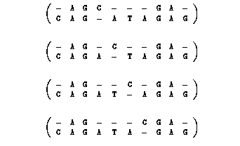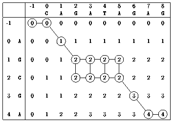 AGGA is a longest common subsequence of x = AGCGA and y = CAGATAGAG.