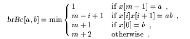 After an attempt where the window is positioned on the text factor y[j .. j+m-1] a shift of length brBc[y[j+m],y[j+m+1]] is performed. The text character y[n] is equal to the null character and y[n+1] is set to this null character in order to be able to compute the last shifts of the algorithm.