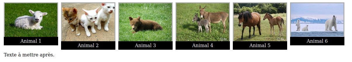 - Faites en sorte que les titres (animal1, animal2, etc.) soient