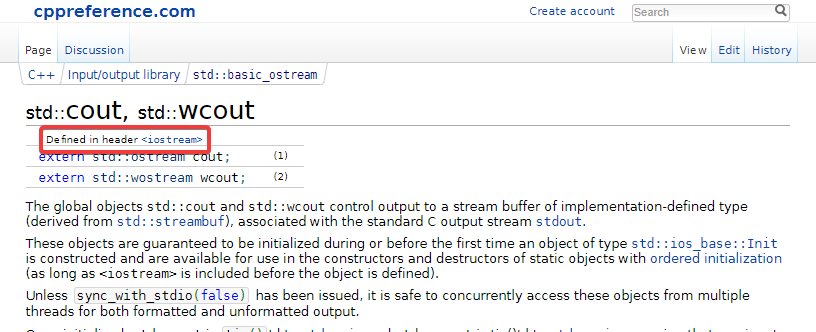 cette page, vous indiquant que le header à référencer est <iostream> :