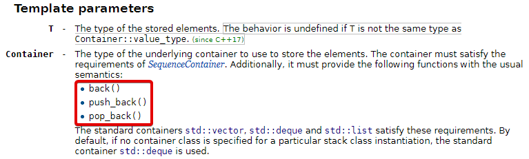 Sur l’image ci-dessus, on vous précise quel conteneur est utilisé par défaut si vous n’en spécifier aucun (c’est-à-dire si vous écrivez juste std::stack<int>, au lieu de std::stack<int, smtg>). De quelle classe s’agit-il ?